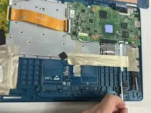 Используйте лопатку, чтобы отсоединить заднюю панель от корпуса ноутбука.