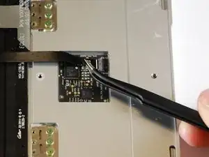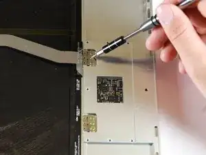 Отключите плоский чёрный кабель от основной платы, используя лопатку, чтобы выдавить его из разъёма, или аккуратно вытяните его рукой.