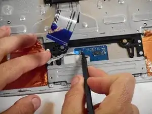 С помощью пинцета поднимите скотч на нижней части тачпада, чтобы открыть соединитель.