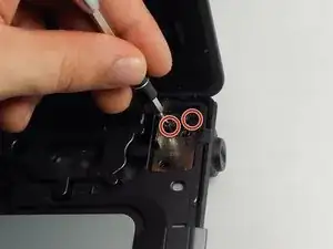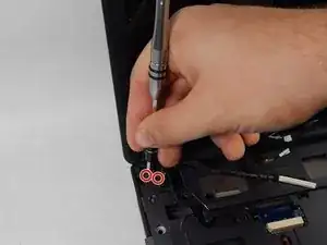 С помощью отвёртки PH0 удалите два винта Phillips 3 мм в гнезде дисковода.