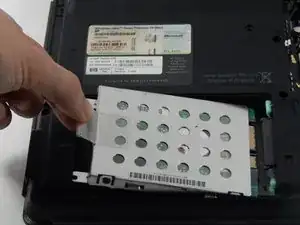 Извлеките жёсткий диск, потянув за пластиковую петлю и поднимая вверх.