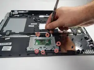 С помощью отвёртки PH0 удалите шесть винтов Phillips 1 мм вокруг тачпада.