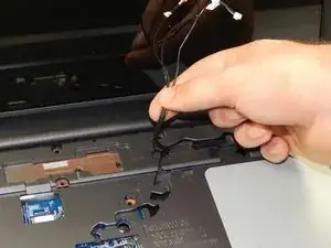 С помощью пинцета отсоедините проводной разъём тачпада.