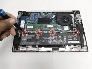 Используйте отвертку Philips #1, чтобы удалить пять винтов размером 1,2 мм с задней крышки ноутбука.