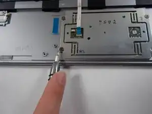 Используйте отвертку Phillips #1, чтобы unscrew и снять четыре винта длиной 2 мм, которые удерживают тачпад.