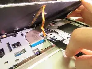 Поднимите чёрную защёлку, удерживающую большой ленточный кабель.
