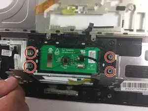 Снимите 4 винта длиной 7 мм, по два с каждой стороны от тачпада.