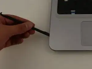 Вставьте лопатку между верхней панелью ноутбука и её внешней рамкой.
