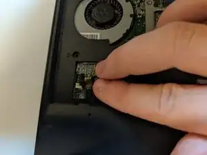 Подденьте и поднимите маленькие чёрные защёлки с помощью точного пинцета для двух ленточных кабелей.