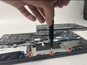 Удалите шесть винтов длиной 5.5 мм, которые закрепляют аккумулятор, с помощью отвертки Phillips #00.
