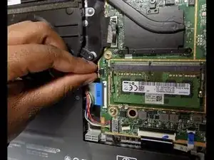 Отсоедините чёрный кабель от материнской платы.