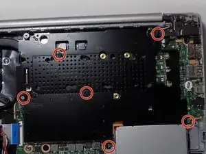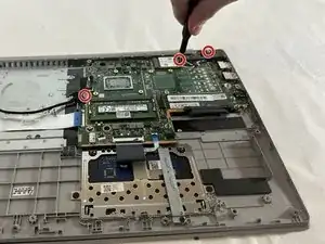 Отверните три винта 3 мм, соединяющие материнскую плату с рамой ноутбука.