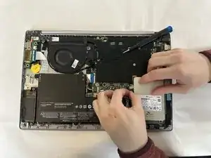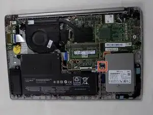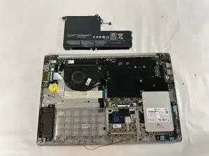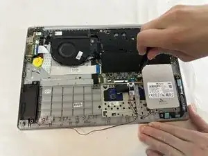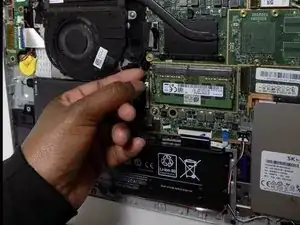 Поднимите вентилятор и извлеките его из ноутбука.