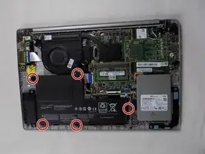 Отверните пять винтов 3 мм, крепящих аккумулятор, используя отвёртку Phillips #00.