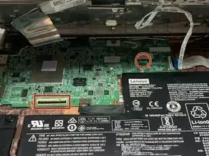 Два указанных разъема позволяют подключать клавиатуру и тачпад к материнской плате. Красный круг указывает место для подключения тачпада, а красный прямоугольник показывает место для провода клавиатуры.