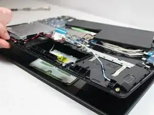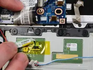Отсоедините три лентовых кабеля, окружающие тачпад.
