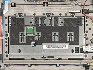 Используйте отвертку Phillips, чтобы отвинтить семь винтов длиной 2.5 мм, крепящих тачпад к раме.