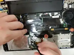 Отсоедините плоский шлейф, соединяющий тачпад с ноутбуком.