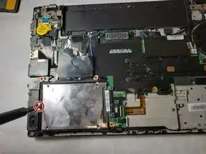 Используйте крестовую отвёртку #0, чтобы открутить один винт, удерживающий жёсткий диск.