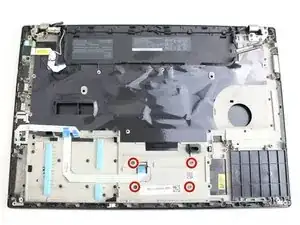 В данном руководстве некоторые дополнительные компоненты были сняты. Из-за этого внутренности вашего ноутбука могут незначительно отличаться от изображений на шагах 8–10.
