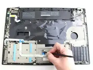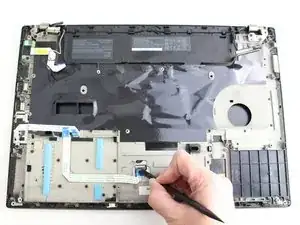 Используя чёрную нейлоновую лопатку, отсоедините шлейф, подключённый к тачпаду.