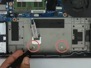 Удалите два винта по 3 мм, которые удерживают тачпад на месте с помощью отвертки Phillips #0.