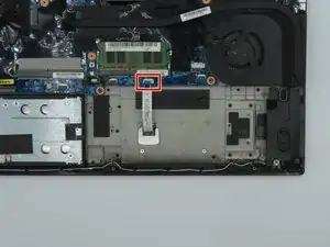 Отсоедините шлейф, который соединяет тачпад с компьютером.