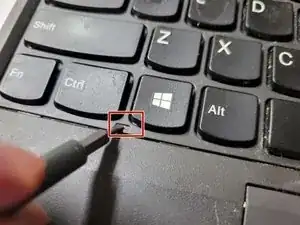 Вставьте лопатку под клавиатуру, как показано на первом изображении ниже, и надавите вверх.