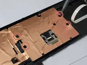 Уберите три винта Phillips #00 длиной 9.0 мм, обведенные красным на втором изображении.