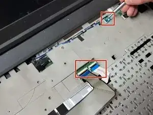Уберите шесть винтов Phillips #000, обведенных красным на втором изображении, и поднимите клавиатуру.