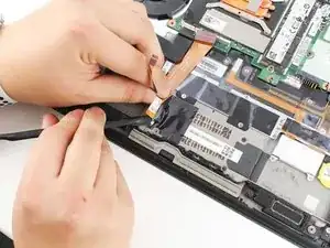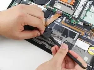 Вытяните кабель, чтобы отключить ленточный кабель, соединяющий тачпад.