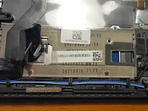 Под шлейфом данных вы найдете два оставшихся винта. Удалите их, чтобы освободить сборку тачпада от корпуса.