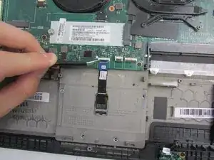 Пинцетом или пальцами аккуратно разъедините соединение между тачпадом и материнской платой.