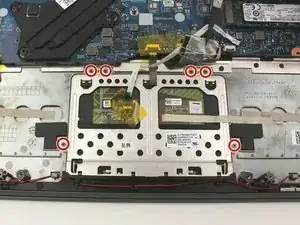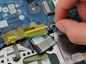 Поднимите верхний край тачпада рядом с материнской платой. Поднимите тачпад вверх и извлеките его из корпуса.