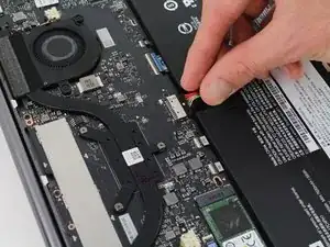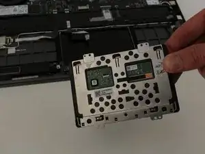 Осторожно вытащите маленький электрический провод сзади тачпада.