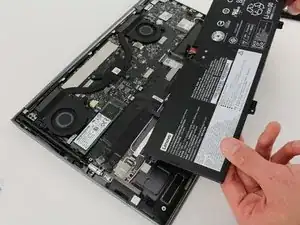 Схватите язычок и медленно потяните от аккумулятора под небольшим углом. Клейкая полоса растянется во много раз и постепенно освободится из-под аккумулятора.