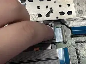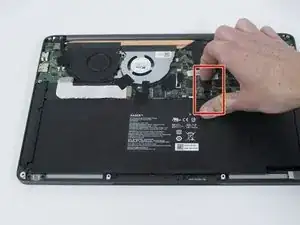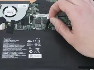 Используйте ноготь, чтобы приподнять и отключить батарею от материнской платы.