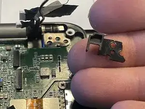 Снимите маленькие пластиковые кронштейны, удерживающие петли дисплея.