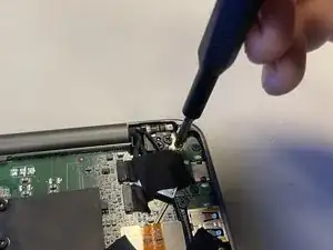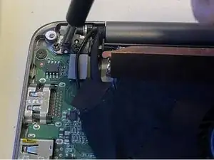 Используйте крестовую отвертку Phillips #00, чтобы отвинтить шесть винтов 4 мм, удерживающих петли дисплея с обеих сторон.