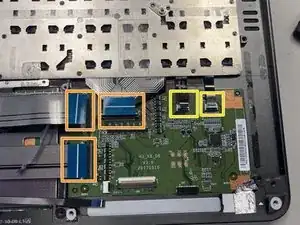 Отсоедините разъём от мышиной панели, подключённый к дочерней плате.