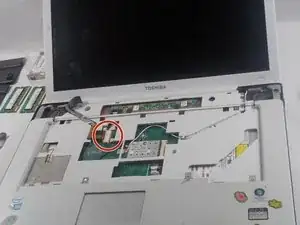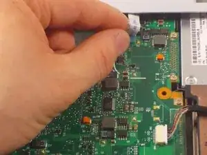 Отсоедините белый пластиковый разъём оплётного кабеля дисплея.