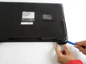 С помощью пластиковых инструментов для вскрытия отделите заднюю крышку от корпуса ноутбука.