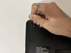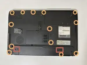 Используйте отвертку Phillips #1, чтобы открутить тринадцать винтов 6 мм на нижней стороне ноутбука.