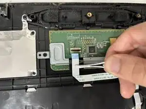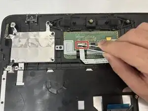 Используйте пинцет, чтобы вынуть шлейф из гнезда на плате тачпада.