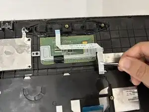 Используйте лопатку или чистый ноготь, чтобы поднять запорную планку на разъёме тачпада.