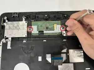 Используйте отвертку JIS #0, чтобы выкрутить два винта из кронштейна, закрывающего тачпад.