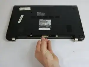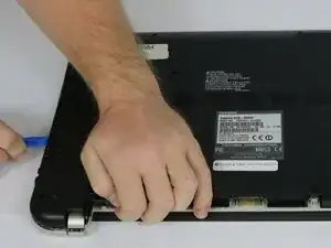 Повторяйте эти действия по кругу вокруг ноутбука, чтобы освободить все удерживающие защёлки.