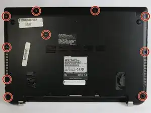 Снимите десять винтов Phillips #1 длиной 7 мм, которые закрепляют заднюю крышку.