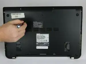Снимите два винта Phillips #1 длиной 7 мм, фиксирующих аккумулятор на месте.
