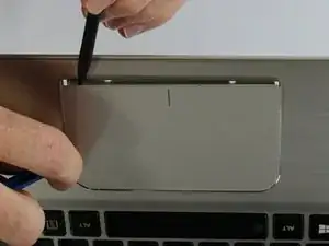 Держите тачпад в приподнятом положении из шага 2 пластиковым инструментом для вскрытия.